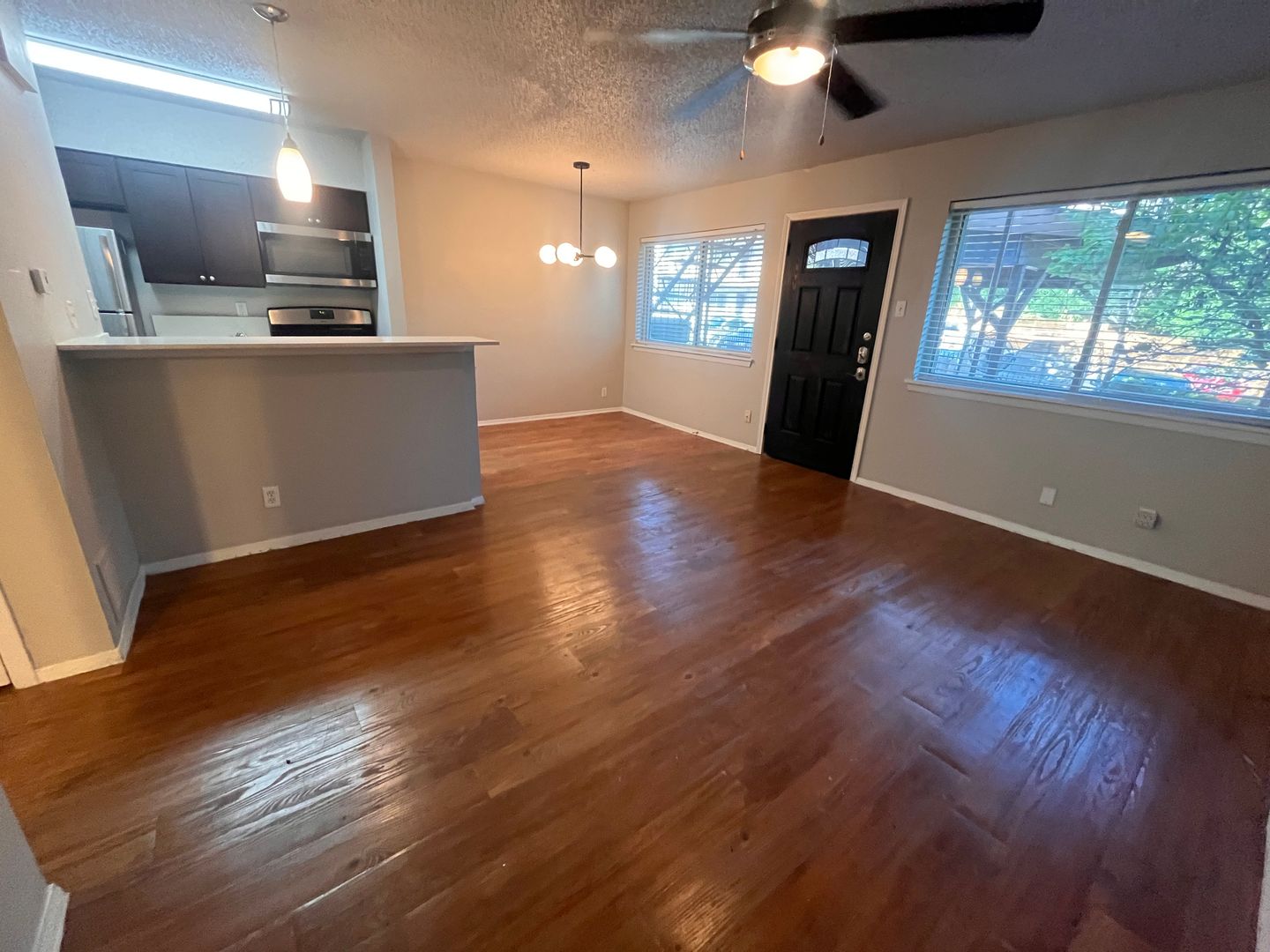 1bed/1bath condo unit located in Travis Heights neighborhood. Easy access to downtown and a short distance to Lady Bird Lake and South Congress bars and restaurants. Complex has a swimming pool and grill area with a third floor terrace overlooking downtown. Unit has vinyl wood plank floors throughout with quartz countertop and stainless steel appliances. Two large closets in primary bedroom. Washer/dryer in unit. Parking available.