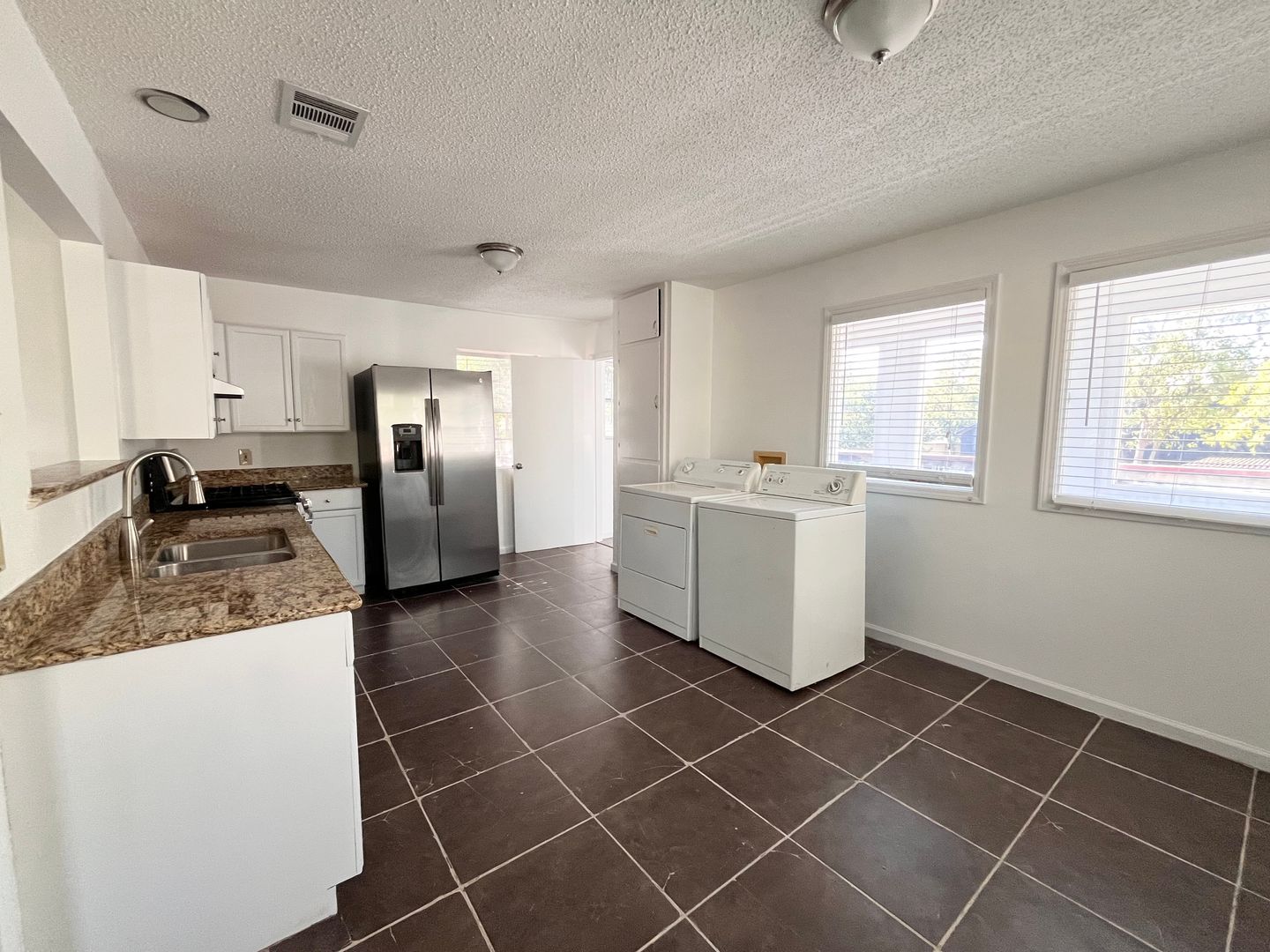 Spacious 4-bedroom, 2-bath duplex with tons of natural light! Downstairs features two bedrooms with a Jack-and-Jill bath. Upstairs has two additional bedrooms, a full bathroom, and a large deck overlooking the backyard. Kitchen has stainless steel appliances, granite countertops, and a washer/dryer. Outside is a detached 1-car garage and a large fenced yard perfect for pets. Walking distance to coffee shops, shops and restaurants in the neighborhood.