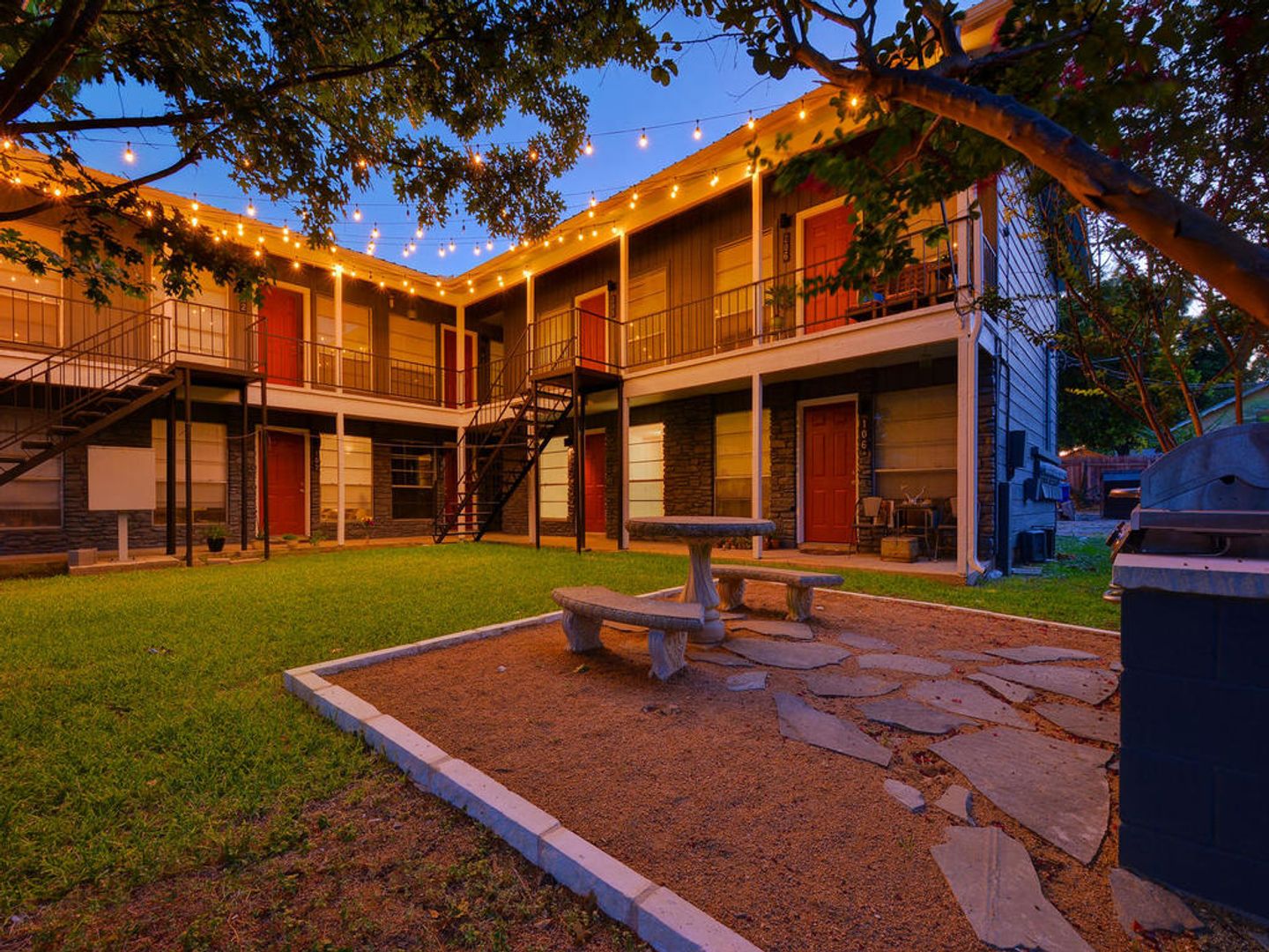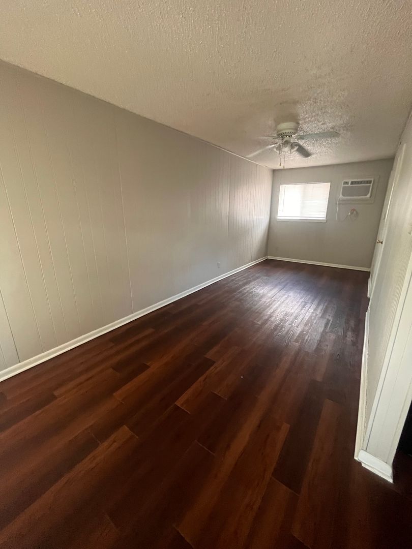 Studio apartment with large walk in closet and on site laundry room. Grassy courtyard with BBQ grill and open parking.