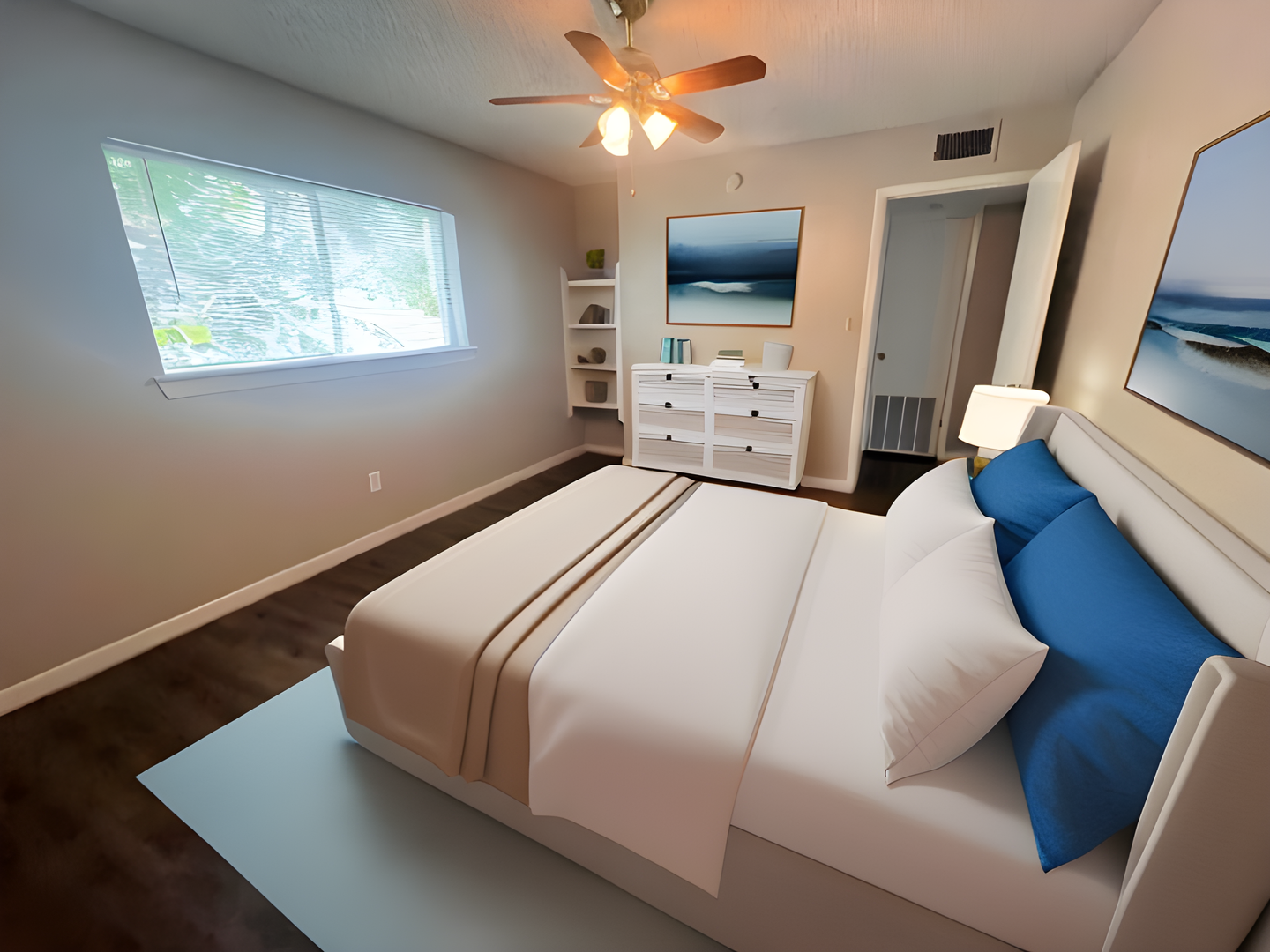 Spacious unit with vinyl plank flooring. The bedroom features a built-in bookshelf, and there are storage closets in the living room and hallway. 2" faux wood blinds. One parking space is included, and an onsite laundry facility is available. Located 0.9 miles from the UT campus.