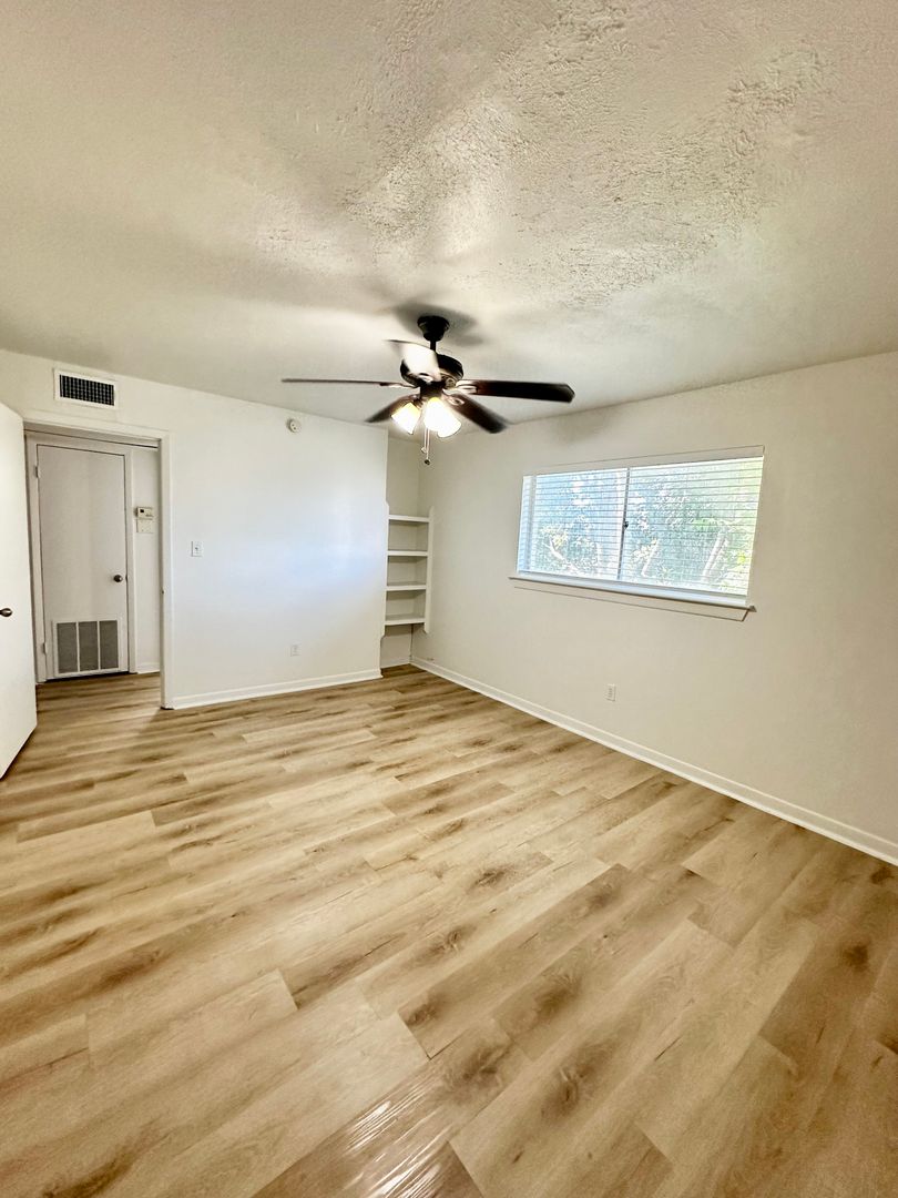Spacious unit with vinyl plank flooring. The bedroom features a built-in bookshelf, and there are storage closets in the living room and hallway. One parking space is included, and an onsite laundry facility is available. Located 0.9 miles from the UT campus.