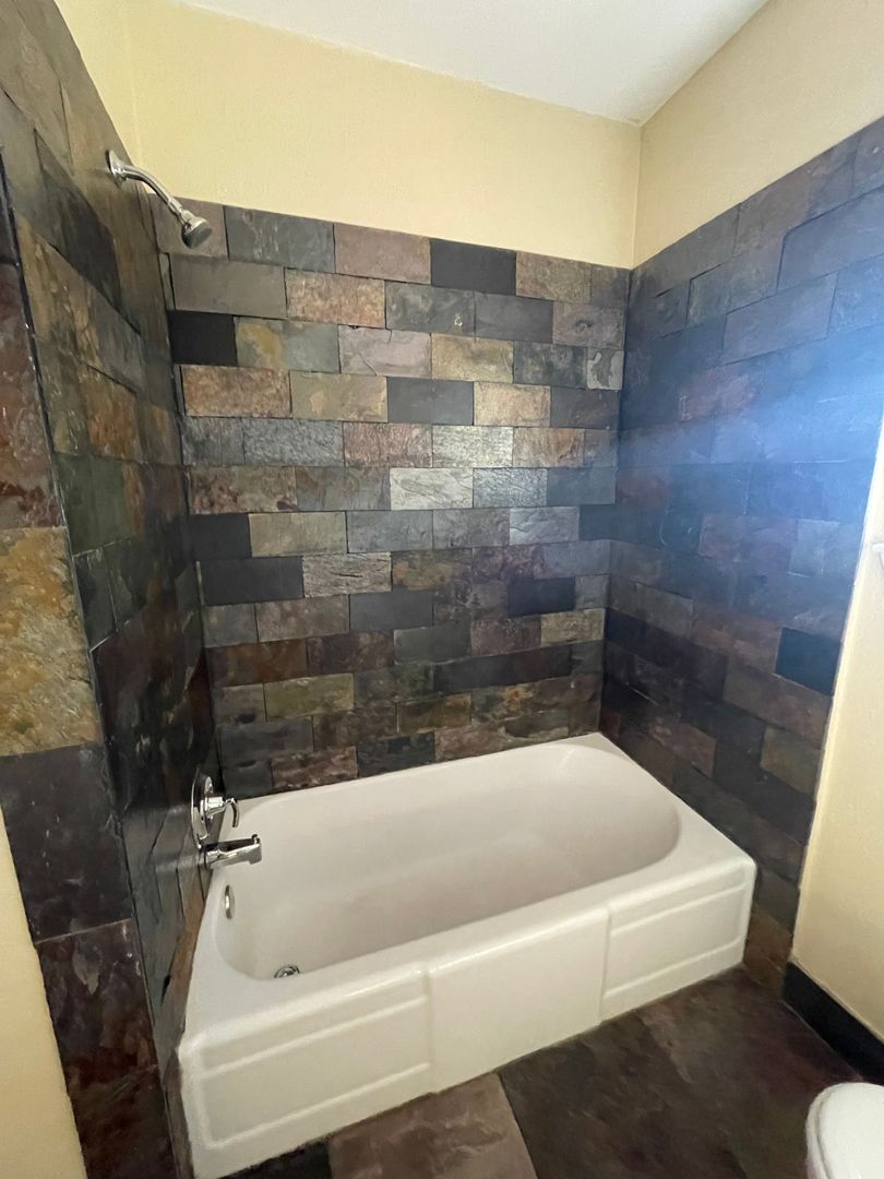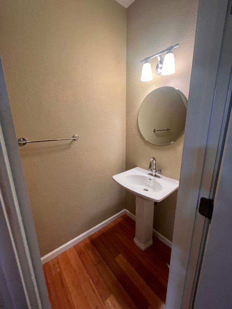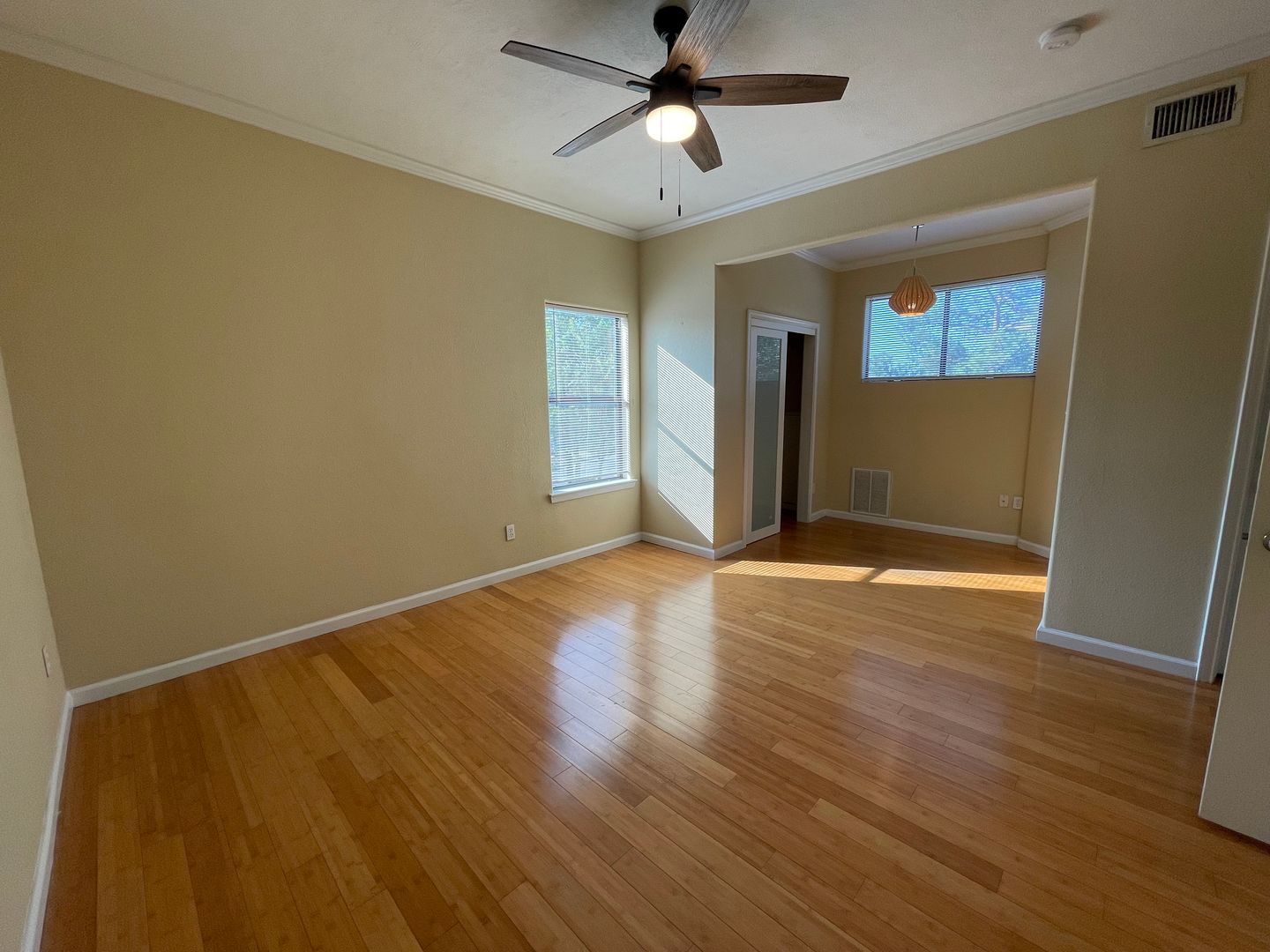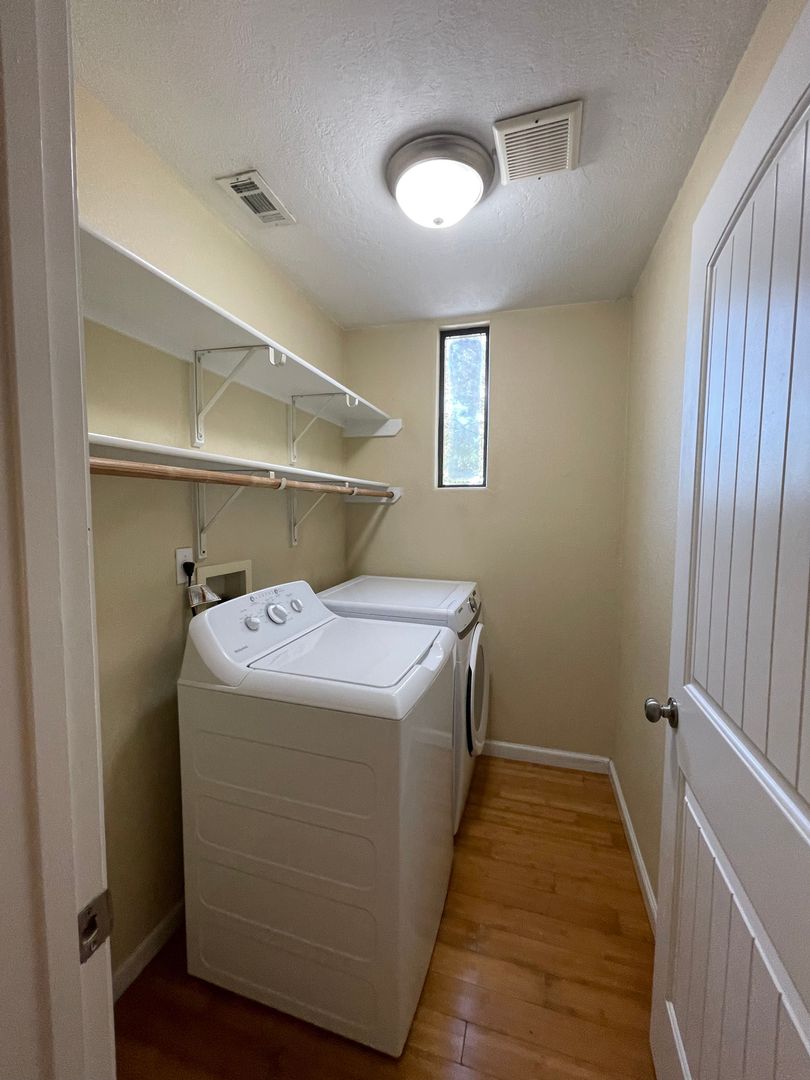 Updated, spacious home with bamboo wood and slate tile flooring throughout. The kitchen features dark wood cabinets, granite countertops, and stainless steel appliances. Downstairs includes a half bathroom and a laundry room with washer and dryer included. All bedrooms are upstairs. The primary bedroom has a walk-in closet and an ensuite bathroom with double vanities and a jetted tub. The home also includes a large three-car garage.