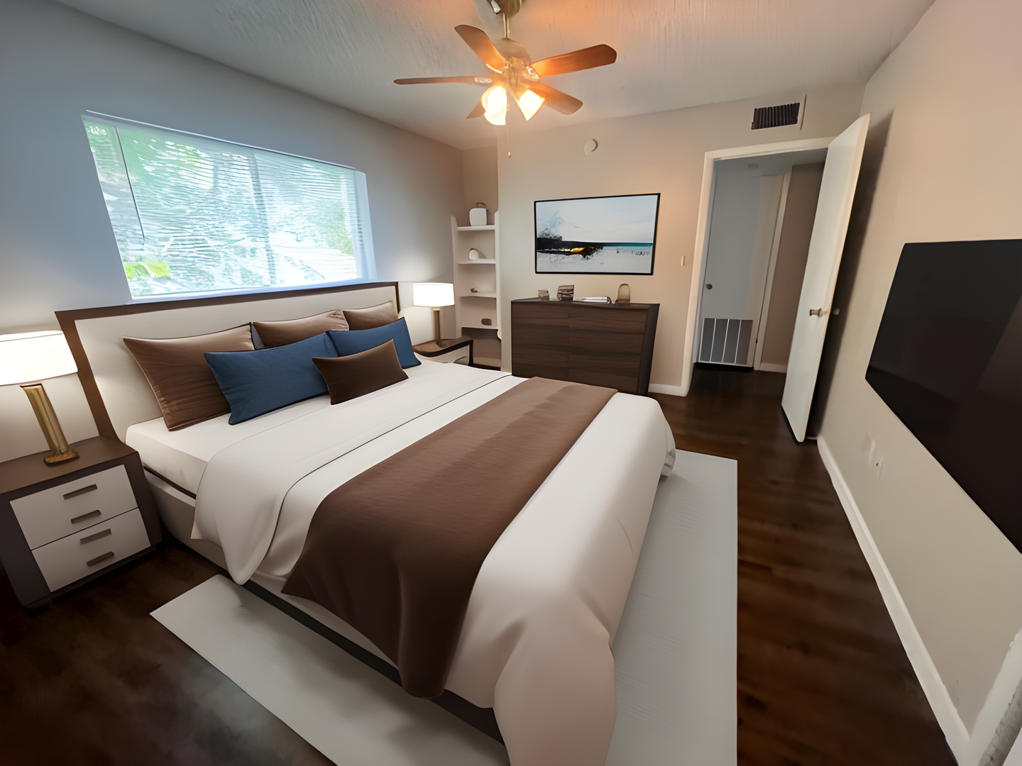 Spacious unit with vinyl plank flooring. The bedroom features a built-in bookshelf, and there are storage closets in the living room and hallway. One parking space is included, and an onsite laundry facility is available. Located 0.9 miles from the UT campus.