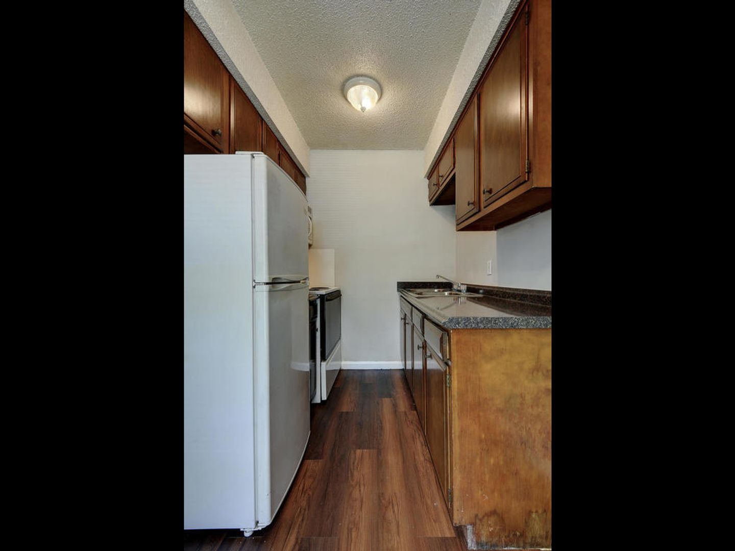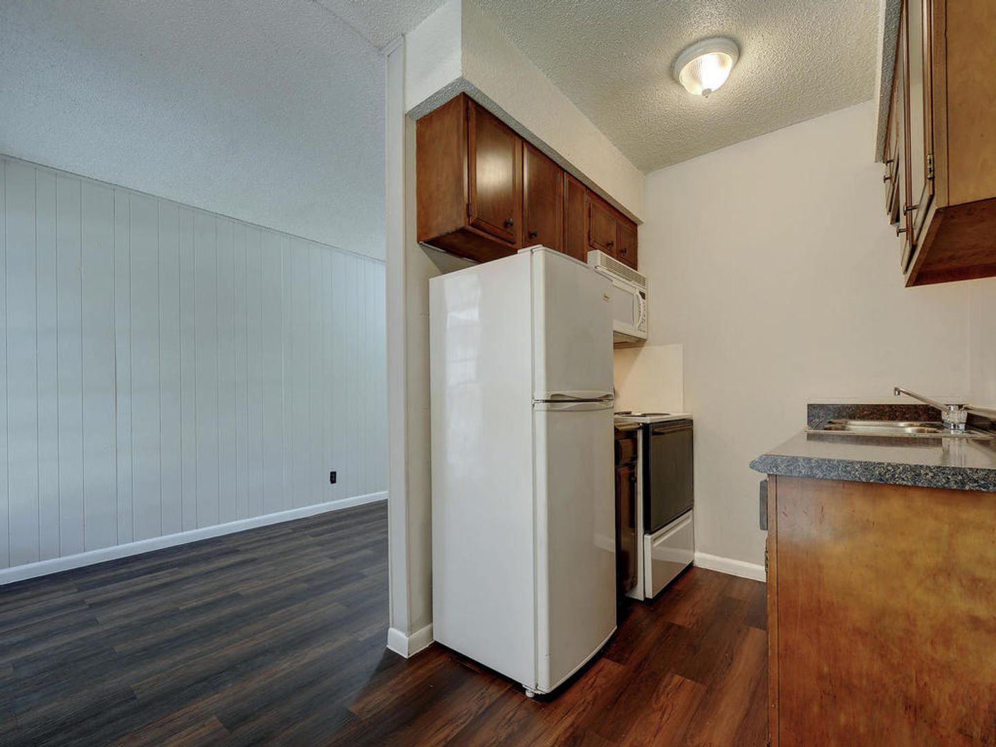 Studio apartment with large walk in closet and on site laundry room. Grassy courtyard with BBQ grill and open parking.