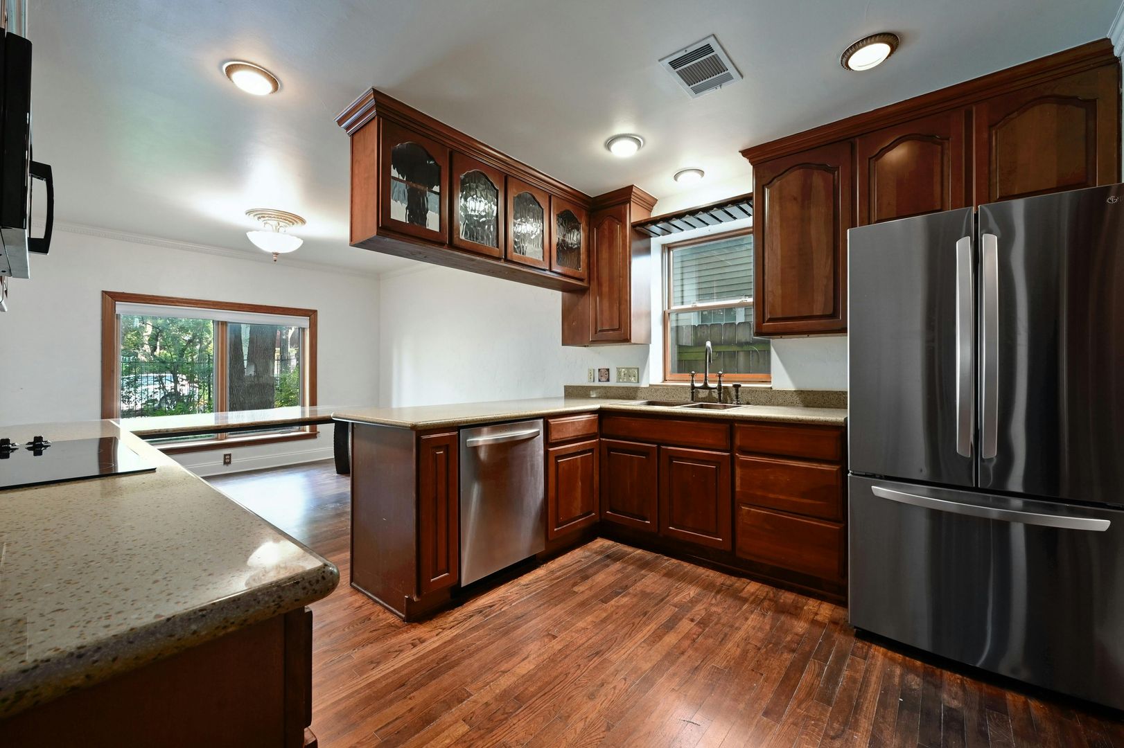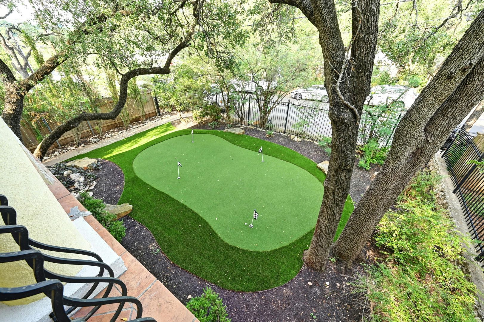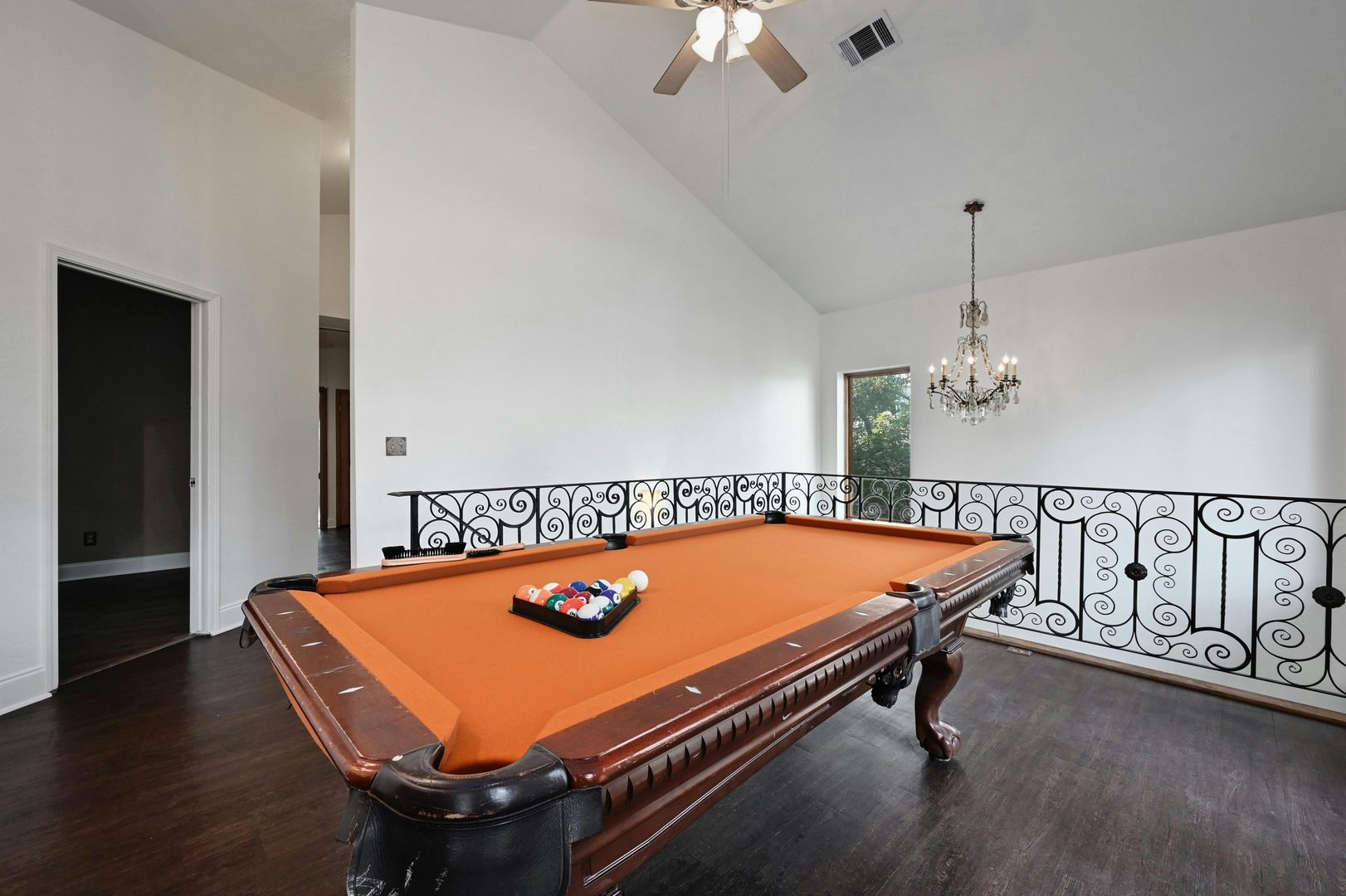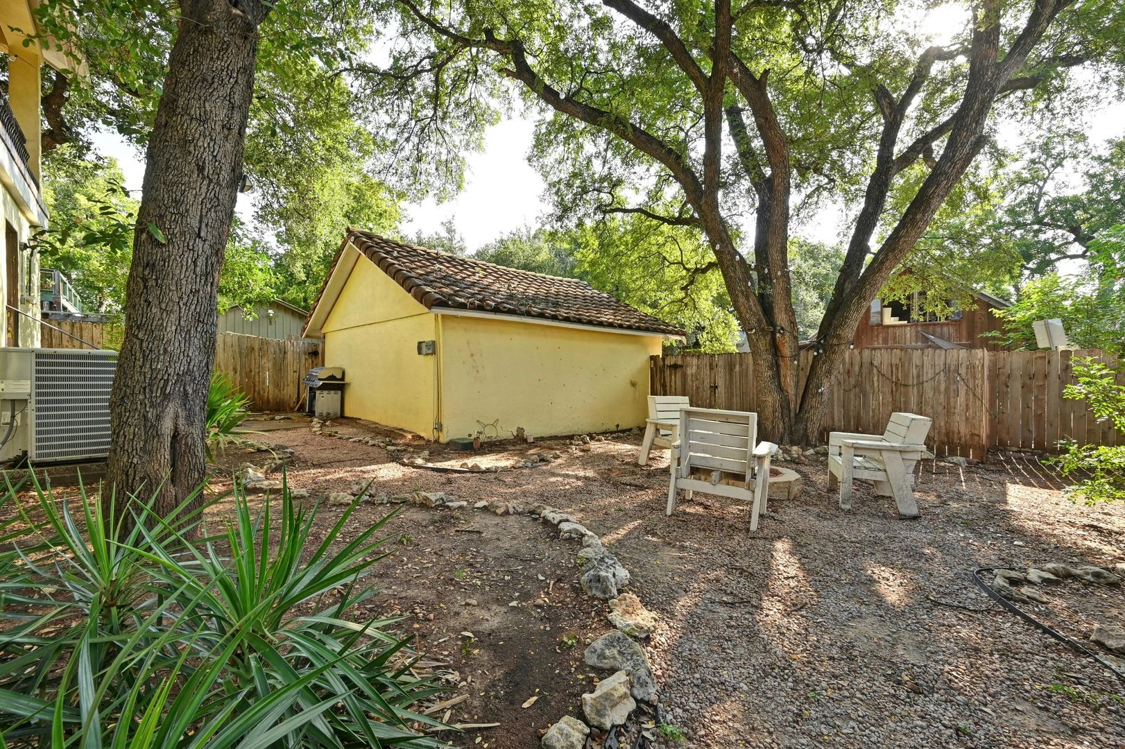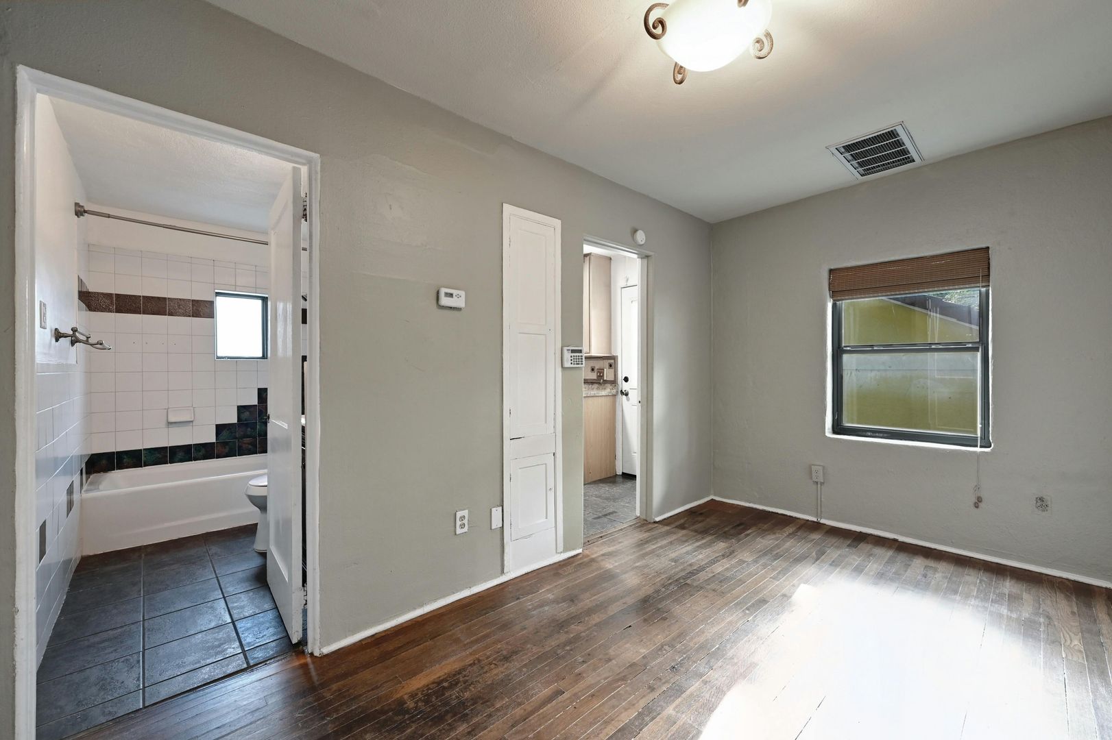 Gated property in West campus just a few blocks from UT. This property has two separate houses. The front house is 4bed/2bath with 20 ft ceilings in the living room and a bonus upstairs game room with pool table. This home has hardwood floors, two large balconies upstairs, stainless steel appliances in the kitchen and a laundry room with washer/dryer included. Large primary bedroom with walk in closet and en suite bathroom with jacuzzi bathtub and custom shower. Back house is a 2bed/1bath with a large living area, full kitchen and dining room. The property is fenced and has a two car garage with alley access. Bonus 4 hole turf putting green in the front yard.